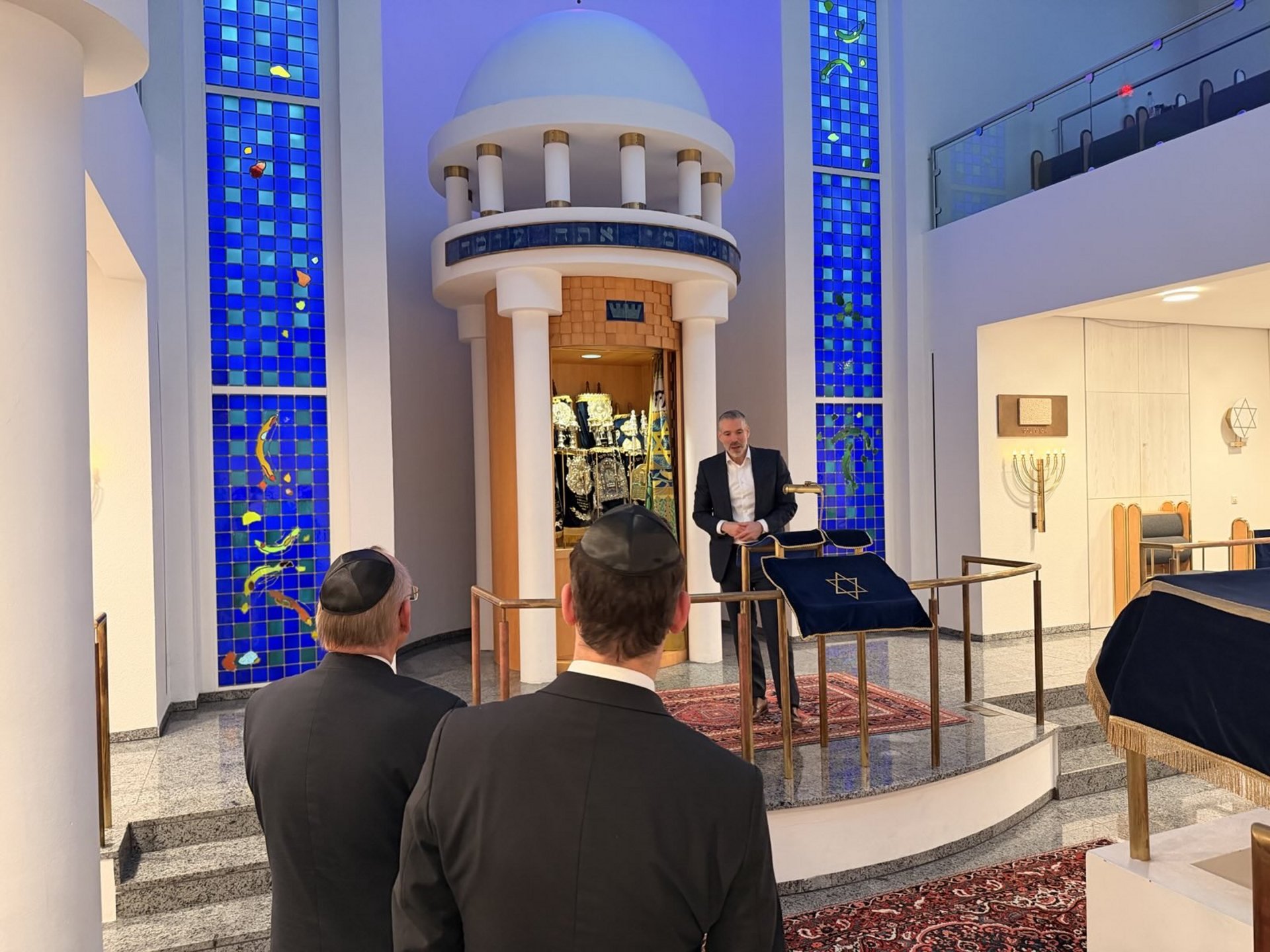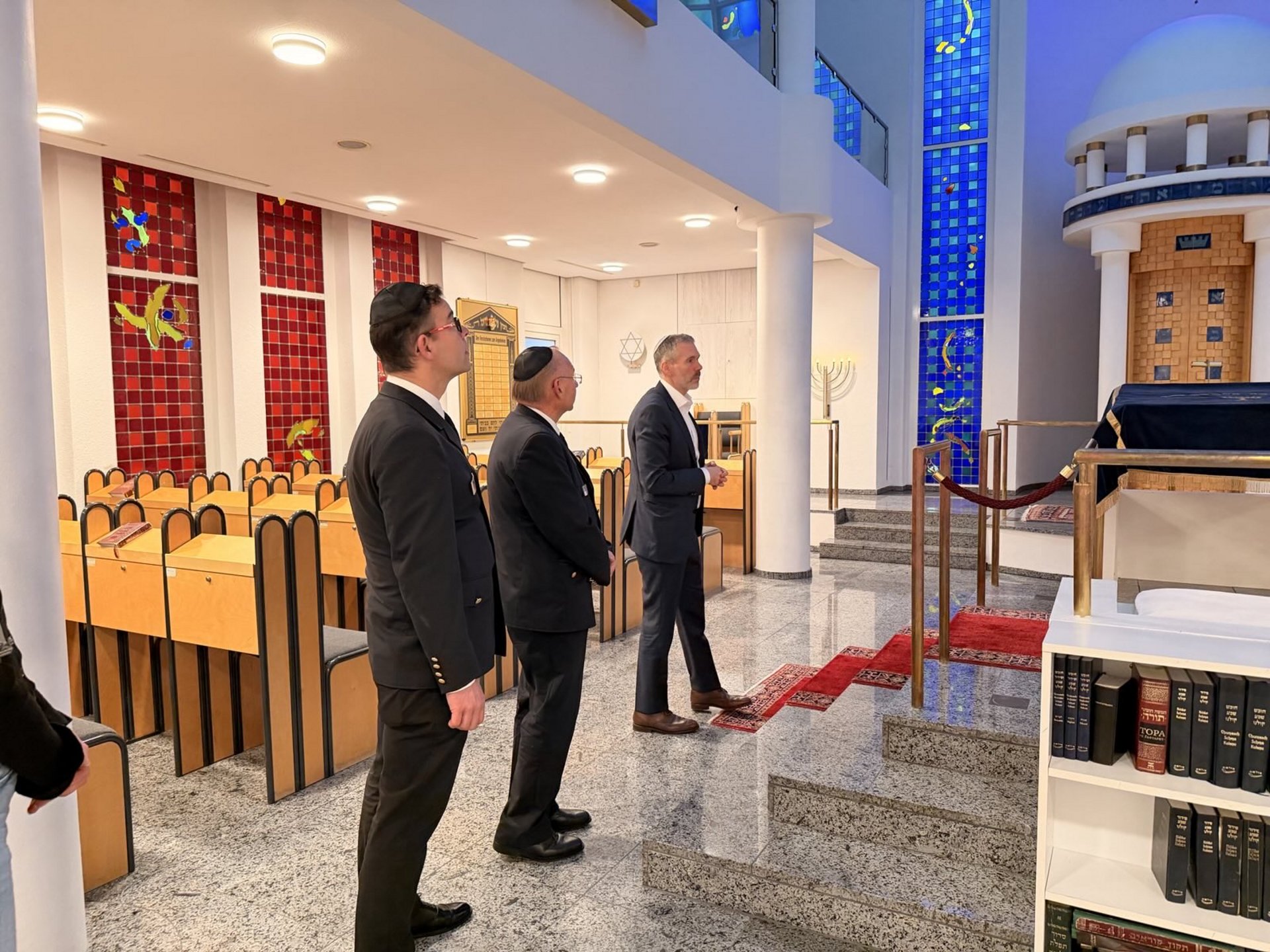 Im Anschluss an das Gespräch führte Daniel Neumann die Gäste durch die beeindruckende Darmstädter Synagoge.