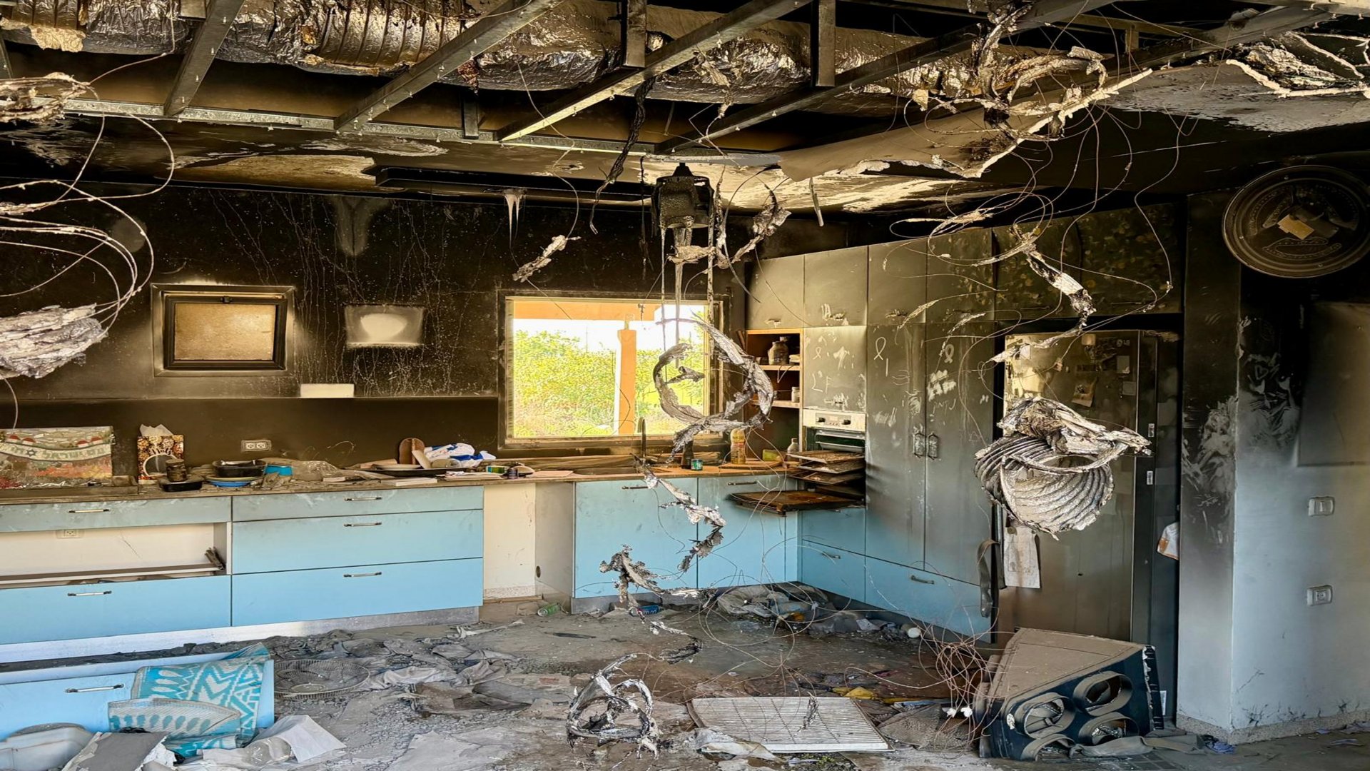 Zurück ins Heute: Ruhig war es. Nur die Vögel zwitscherten. Und hier und da wogte der Wind durch die Bäume in der liebevoll gestalteten Oase. Ein kleines Paradies. Wären da nicht die Zeugen des Grauens, das diesen Ort und seine Bewohner - wie so viele andere - heimgesucht hat. Zerstörte, ausgebrannte und geplünderte Häuser. Einschusslöcher, wohin man auch blickt. Die Spuren verbrannter Autos am Straßenrand. Hier und da Reste von gelben Absperrbändern der Polizei, die einen Tatort markieren. Und überall Bilder, Plakate, Aufkleber in Erinnerung an die Entführten, die Ermordeten, die Geschändeten. Rührende Botschaften, liebevolle Zeichnungen, Fragmente der Menschlichkeit. Für die Opfer des palästinensischen Hasses. Für die Alten und Jungen, die Frauen und Männer, die Kinder und Babys, deren einziges Verbrechen es war, jüdisch gewesen zu sein.